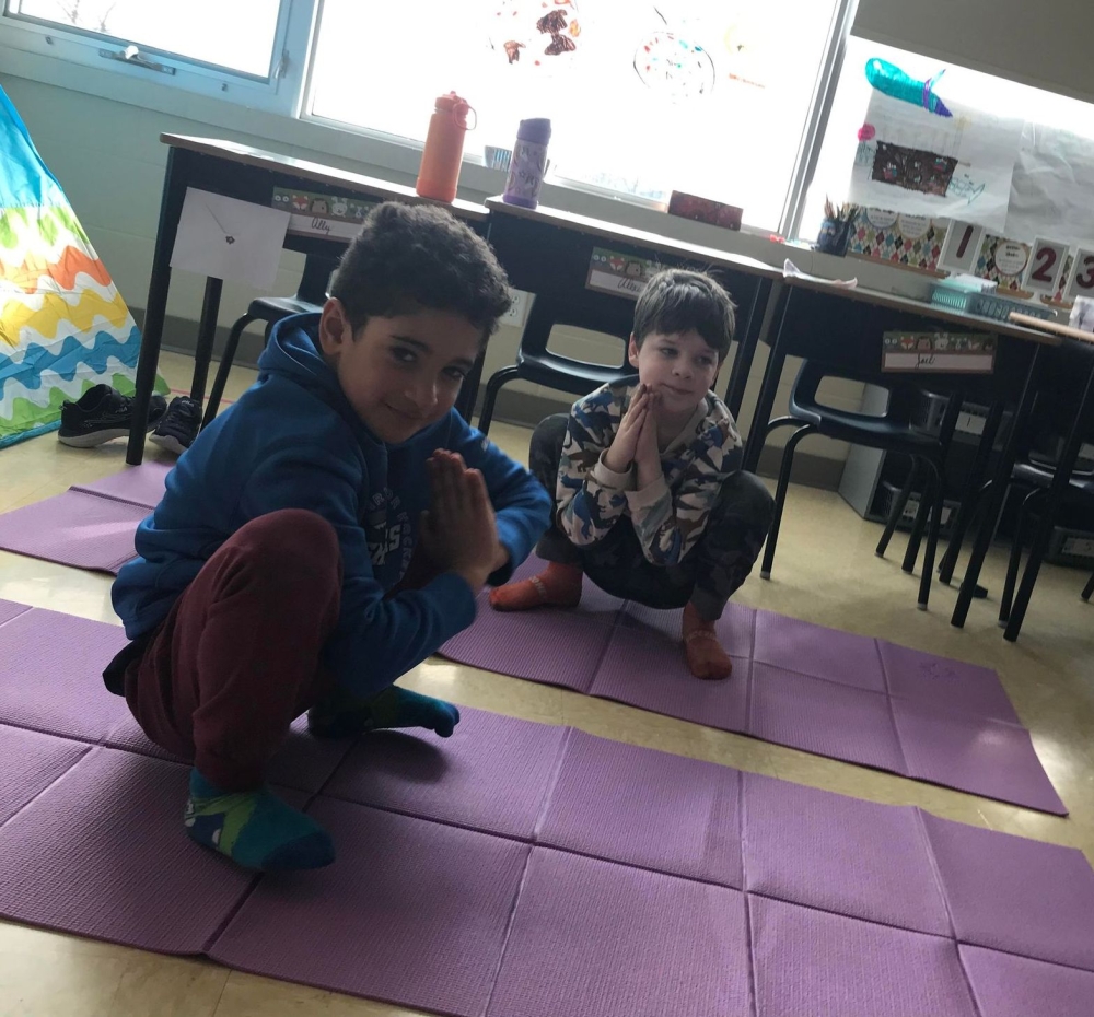 Dans le cadre de leur projet entrepreneurial leur permettant de découvrir le yoga et la méditation, les élèves de la classe de madame Lise ont eu une session de yoga avec Mme Isabelle Frenette, accompagnée de son oncle et yogi M. Yves Doucet.